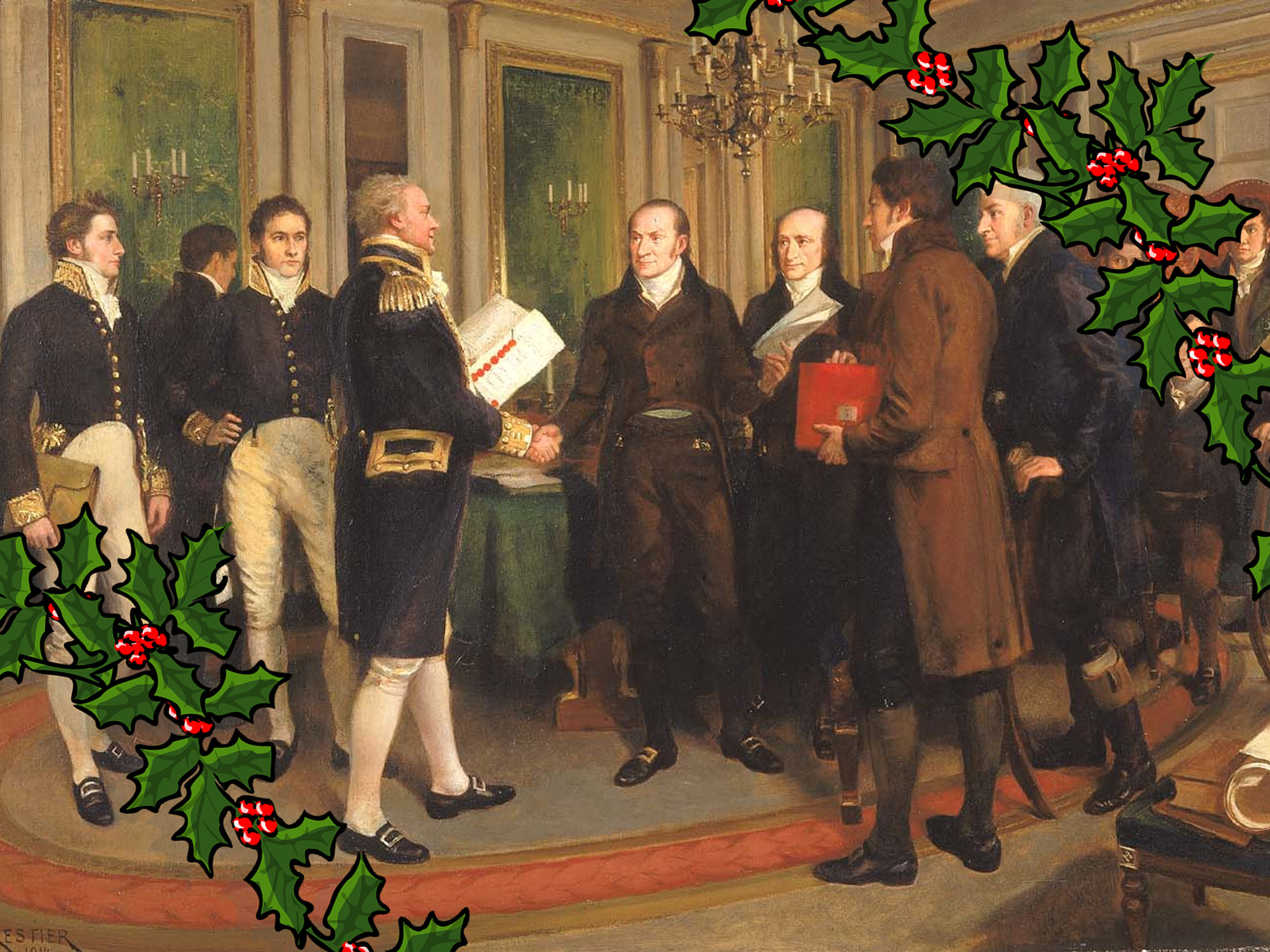 Second Decade wishes you happy holidays with this Christmas-themed episode. Of all the Christmases of the 1810s, the year 1814 stands out as especially significant. The world was celebrating its first holiday season in over two decades in the midst of general peace, except for one last pesky war that wouldn’t quite die. While the crowned heads at the Congress of Vienna—supposedly working for world peace but in reality boozing and partying like there was no tomorrow—were exposed to the highly flammable new holiday tradition known as the Christmas tree, a team of diplomats including future U.S. President John Quincy Adams were actually putting the Yuletide greeting “peace on earth” into practice. A convoluted and sometimes disheartening round of negotiations between two unequally-matched teams of statesmen yielded the Treaty of Ghent, which ended the War of 1812 despite consciously avoiding resolution of all the major issues that caused the war in the first place. Now that’s diplomacy!