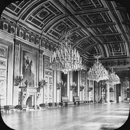 [Above] These rare photographs show the inside of the Tuileries Palace in Paris, where many of the events of this episode take place. After Napoleon, the palace was used again by the restored Bourbon kings and the July Monarchy (post-1830), and even by Napoleon III, nephew of the first French emperor who took power in the 1850s. The palace was deliberately burnt down during the Paris Commune of 1871 and the scorched remnants demolished in 1883, destroying a major part of 19th century French history.