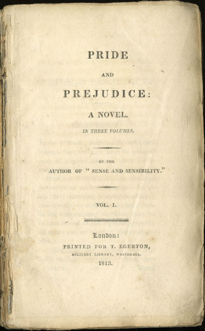 [Above] The title page of the original 1813 edition of Pride and Prejudice, volume I. This is one of the most valuable books in the English-speaking world. Since the Second Decade, Jane’s books have never been out of print, though she did have a period of relative obscurity from her death in 1817 until the 1833 reprints of her works.