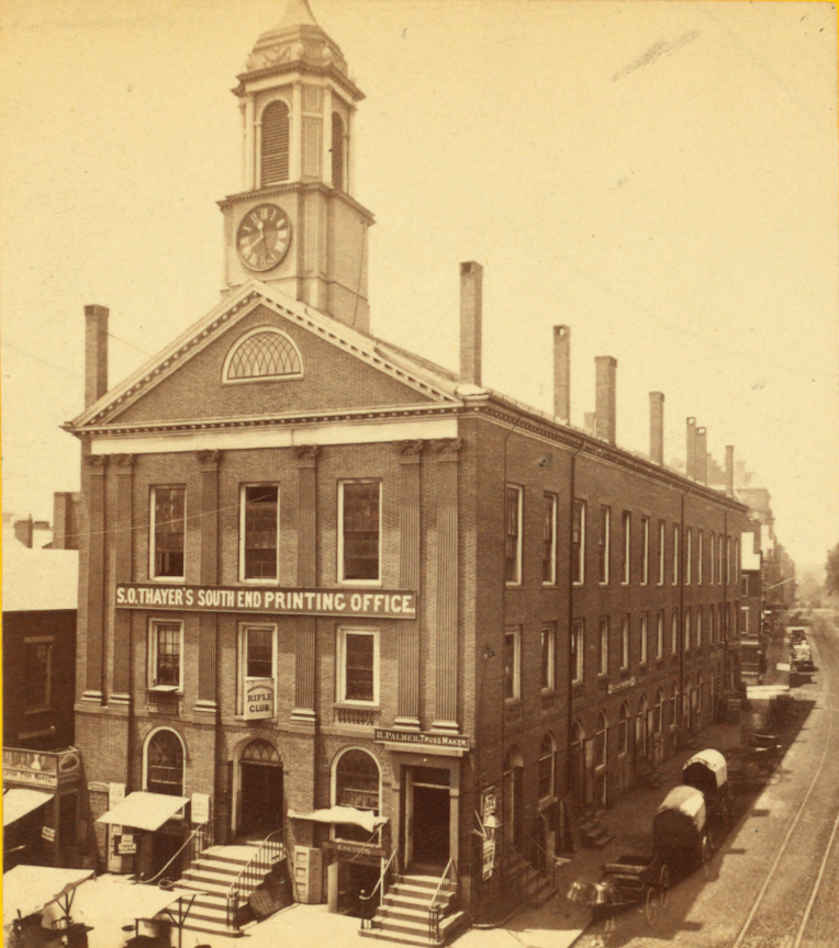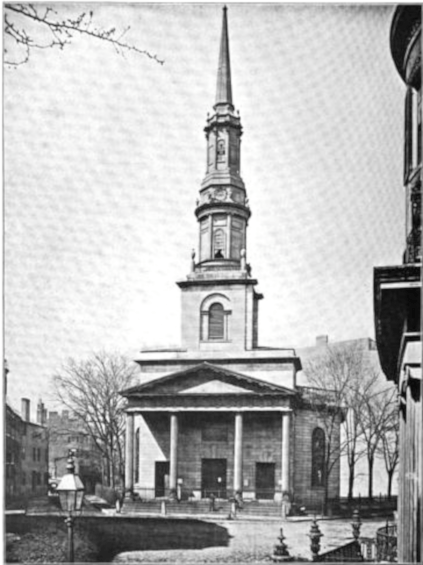 [Above] New South Church in Boston, as it appeared in 1858, ten years before its demolition. The building itself appears to have been hexagonal in design (in the episode I may have said it was octagonal; the steeple was, but not the building itself).