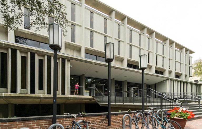 [Above] Here is the sad monstrosity that replaced the Wilkinson House: the John D. Rockefeller Jr. Library. (Photo by Kenneth C. Zirkel, used under Creative Commons 4.0 license). A prime example of Brutalist architecture, it was apparently designed during the six-month window in 1962 when people thought this sort of thing was attractive.