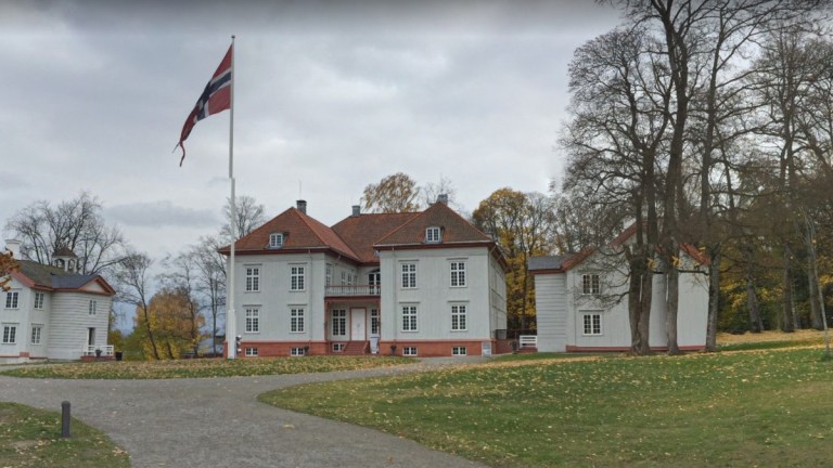 [Above] Eidsvoll Manor, also known as Eidsvollsbygningen, where the independence and constitutional meetings took place, as it appears today. It’s now a Norwegian national shrine. Image from Google Maps.