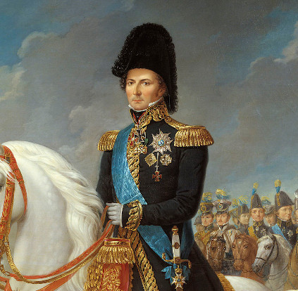 [Above] Jean Bernadotte, the French field marshal who wound up as Crown-Prince of Sweden after a political deal to replace Sweden’s aged and heirless king. Bernadotte, born in Pau, France, had to convert to Lutheranism to take the Swedish crown. His idea to “swap” Norway for Finland as a consolation prize to Sweden was the genesis of Norwegian independence. Though he was in de facto control from early on, Bernadotte formally ascended to the Swedish throne as King Carl XIV Johann in February 1818. He was still reigning at his death in 1844.